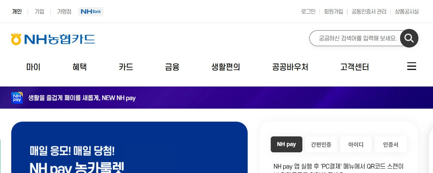 1. ‘NH농협카드’ 홈페이지 또는 앱 접속