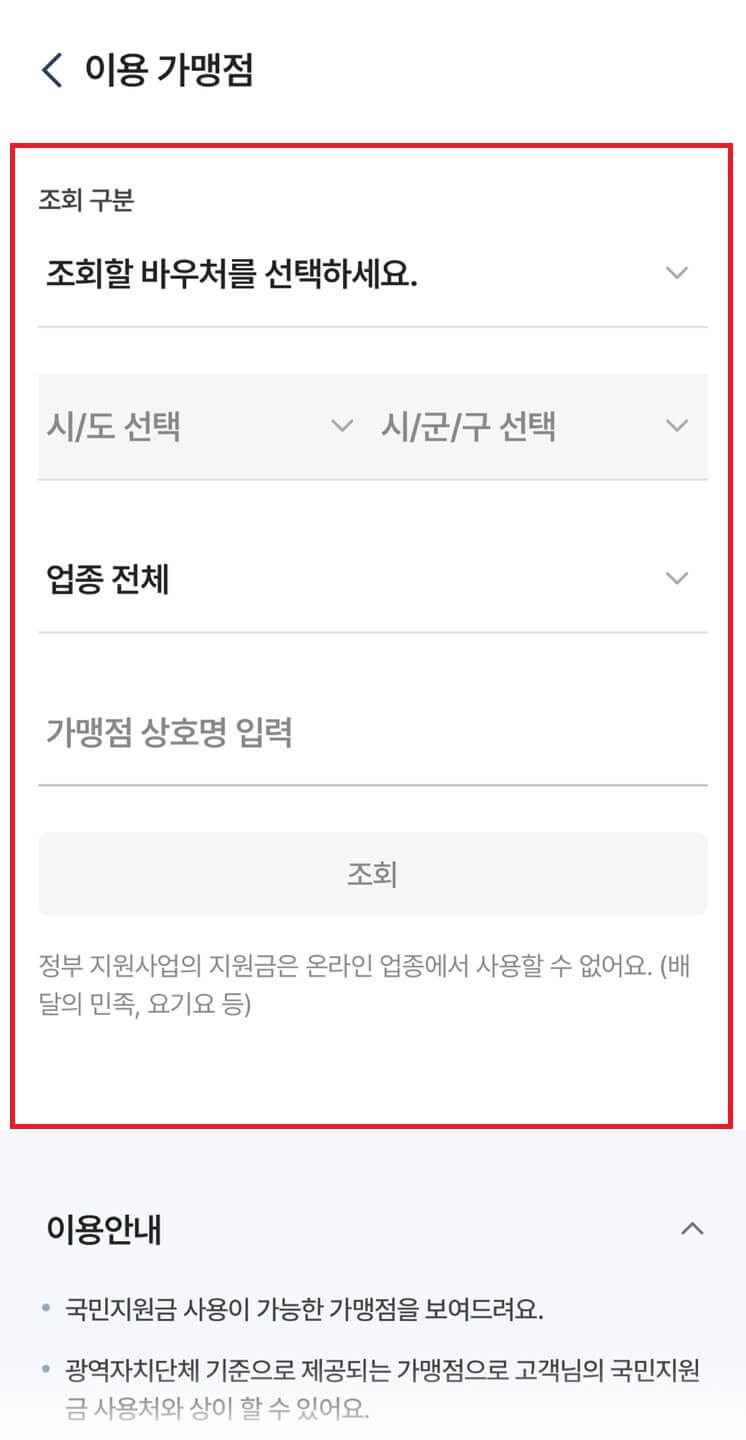 → 원하는 지역의 이용 가능 가맹점 목록 확인 가능!
