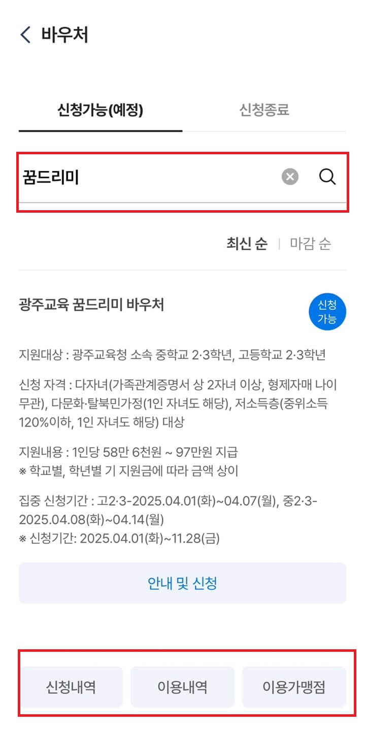 광주시 꿈드리미바우처 카드 잔액조회 방법